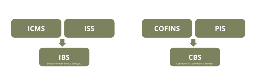 A partir da reforma, esses quatro tributos serão substituídos por apenas dois impostos, que funcionarão de maneira mais simples e padronizada: